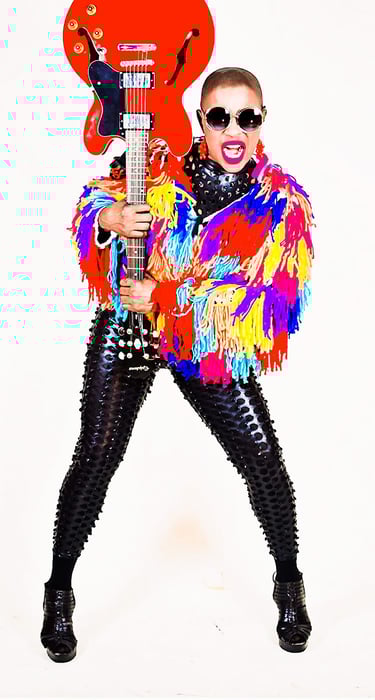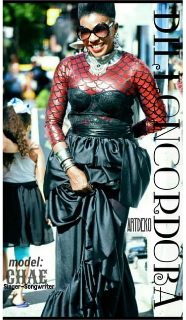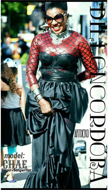 This specific outfit represents the CHAÉ's resiliency and her warrior strength when speaking out about her struggles and survival as a woman, AfroLatina artist in her hometown in SouthAmerica with her song My name is CHAÉ