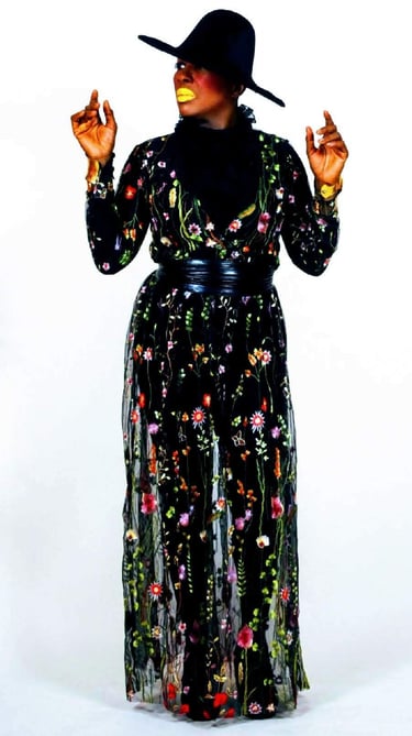 CHAÉ's authenticity serves as inspiration for her designer Artdeko to create the perfect piece that represents the artist's theme and intention. In this piece for the song Bumange, Artdeko understands the fire, the boldness and the beaty of this woman to bring acknowledgement of the presence of AfroColombians and the diaspora